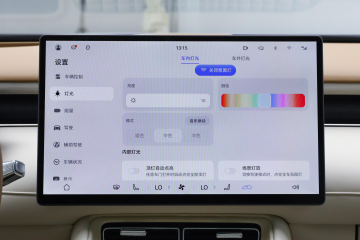 内饰质感完全超越了20多万的价位。触手可及的地方都用了软质包裹,门板上的皮质缝线细腻,中控台的木纹装饰板摸起来没有廉价的塑料感。极光紫、琥珀棕两种内饰颜色很有格调,配合64色氛围灯,晚上开车时车内氛围温馨不压抑。值得一提的是隔音表现,高速120km/h行驶时,车内交谈不用刻意提高音量,胎噪和风噪都被控制得很好,这得益于全车的双层隔音玻璃和密封工艺。